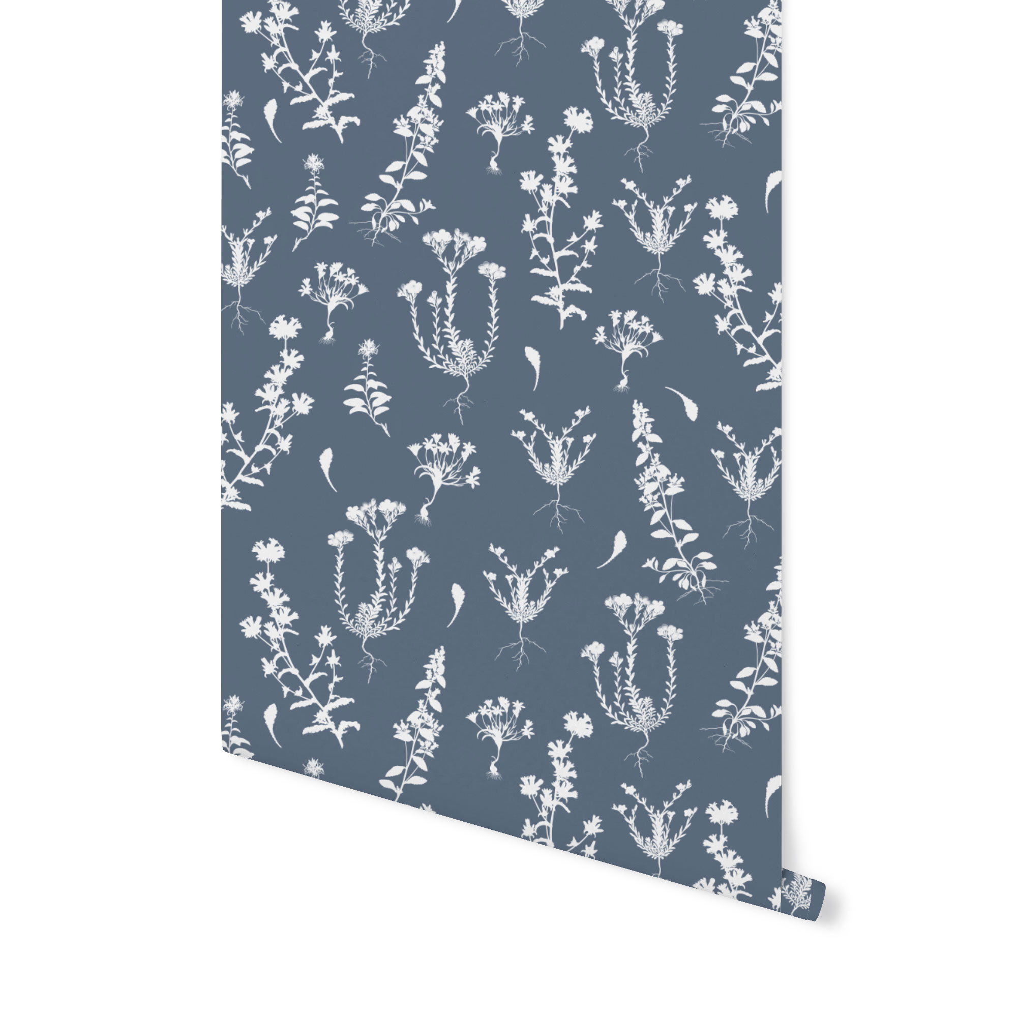 Mini kolekcja tapet w pieknym stalowo-granatowym kolorze. O motywach od szczegółowego botanicznego, po spokojną kratę.